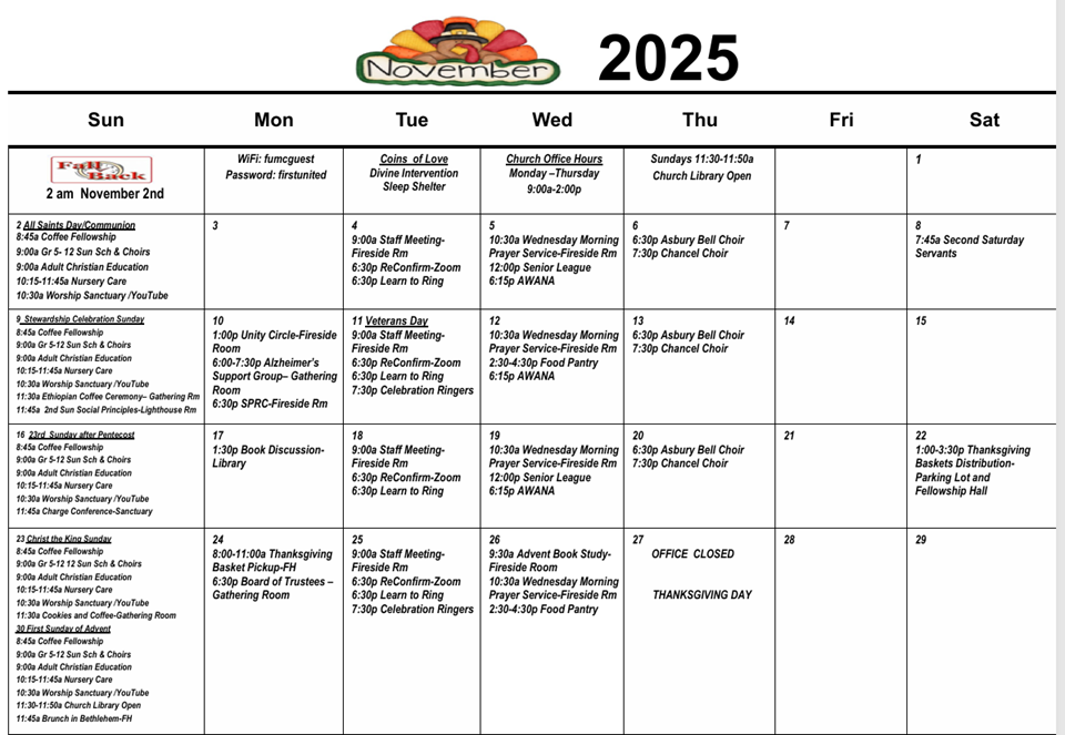 View October calendar here, or download the October calendar by clicking here. View November calendar here, or download the November calendar by clicking here.